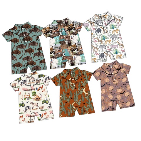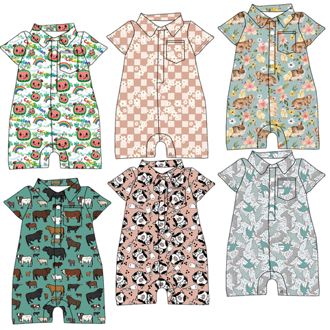 Высококачественный Детский комбинезон с принтом на заказ, Летний комбинезон с короткими рукавами и застежкой на пуговицах, милый комбинезон для ползания