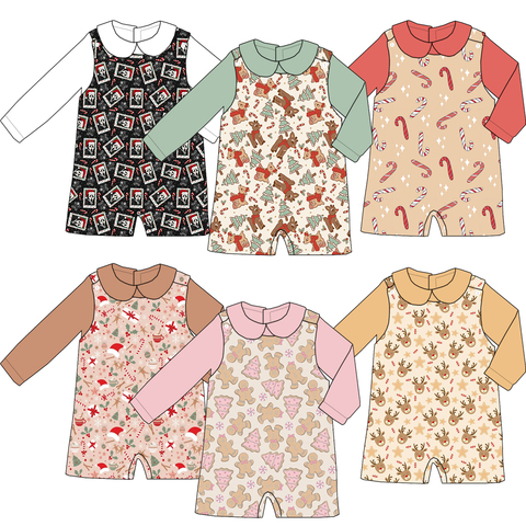 Осенняя детская одежда, комбинезон на пуговицах с длинными рукавами и брюками, на заказ с рождественскими узорами, детская одежда