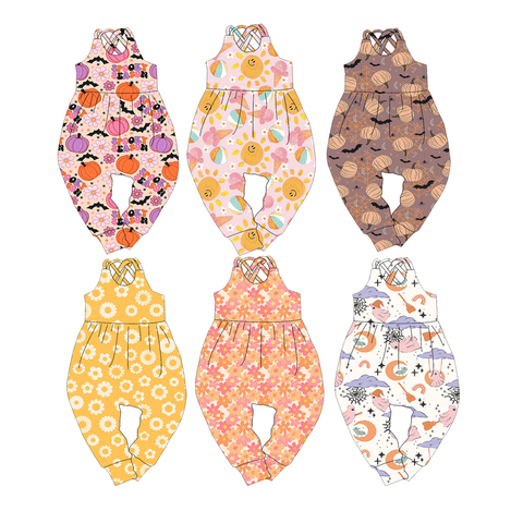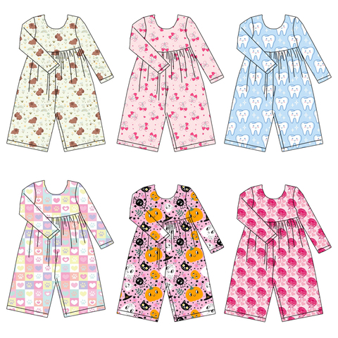 2025 Детский комбинезон с длинными рукавами на заказ для повседневной одежды с широкими штанинами, комбинезон для девочек