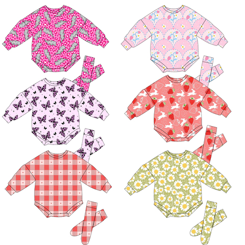 Новоприбывший детский цельный костюм с длинными рукавами и носками с индивидуальным рисунком-высококачественный комплект одежды для девочек